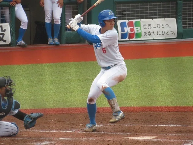 ゆったりとタイミングを取り小さい足上げからしっかりと球を叩いてきます。パンチ力があって長打力が魅力の選手です。右の強打者タイプの外野手として1部でどこまで通用するか楽しみです。