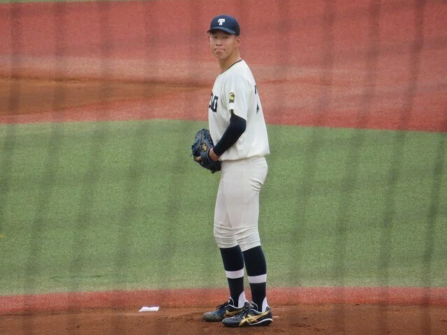 しっかりとリリースして内外突く直球とブレーキの効いたスライダー、抜けの良いチェンジアップの緩急で打ち取る左腕です。直球に強さが出てくると安定した投球ができてくると思います。今春はエース級の活躍を期待したいですね。1部で通用するか楽しみです。
