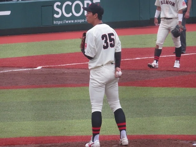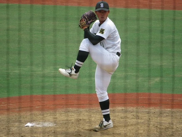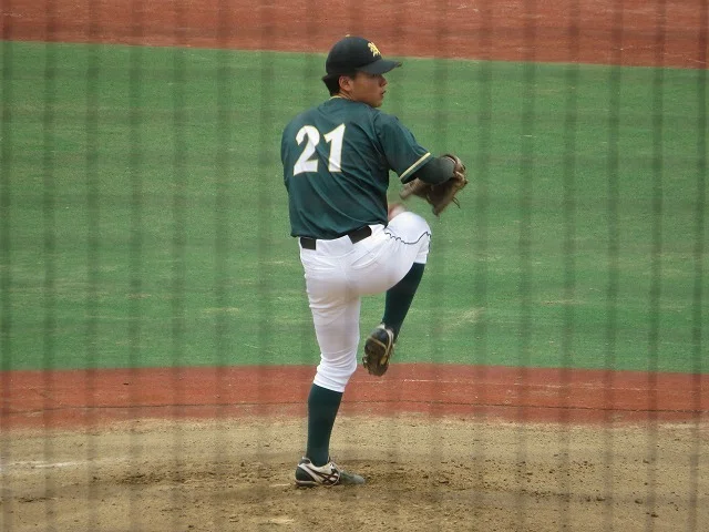 伸びのある直球、曲がりの大きいカーブ、打者の手元で鋭く曲がるスライダーのコンビネーションで打ち取ります。コンスタントに150キロ前半の直球を投げられるポテンシャルが光る投手です。ドラフト上位指名候補に入ってくる投手だと思いますし、チームを1部に押し上げる投球をして欲しいですね。
