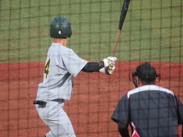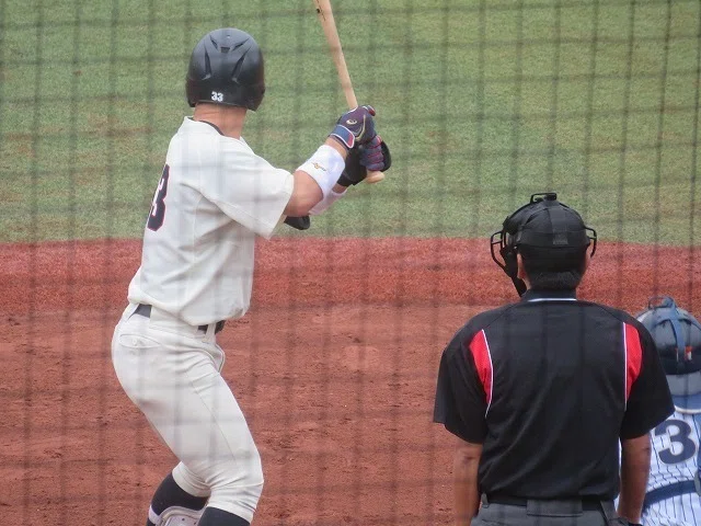 鋭いスイングで球の捕らえが良くセンター方向にライナー性の打球を放ちます。パンチ力があって長打も期待できる選手です。下級生から出場している経験値のある選手ですし、打線の中心として活躍を期待したいです。