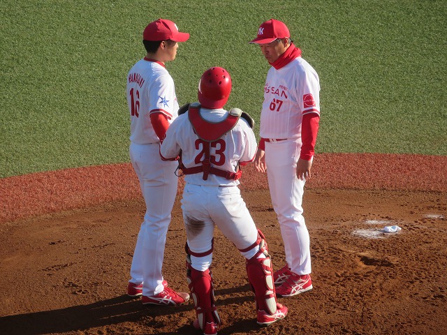 140キロ中盤の直球、カーブ、スプリットを投げます。腕の振りが良くズドンとくる力強い直球で内外を突き、変化球との緩急で打ち取ります。緩いカーブが投球のエッセンスになって押し引きができる投手です。クローザーとしての起用になりそうですが、しっかりとゲームを締めくくってほしいです。リリーフで1回、1安打、0三振、0四球、0失点。